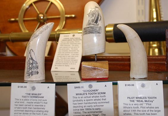 MISCELLANEOUS SCRIMSHAWWe have a continuously chaning inventory of scrimshaw: whales teeth, walrus tusk, baleen, elephant ivory, wood and bone... please call 800 235 7221 for more info.