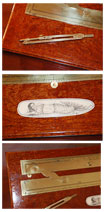 THE NAVIGATORThis is a "one of kind" plaque and everything on it is at least 100 years old if not older. The T.S. & J.D. Negus Co. (established in 1864 in New York) parallel rule is solid brass. The scrimshaw is done on elephant tusk and has fine detail. The vintage dividers are brass and steel. The plaque was made from solid Honduras mahogany and finished with three coats of hand-rubbed spar varnish. Size: The plaque measures 21” long and 8 ¼” high.